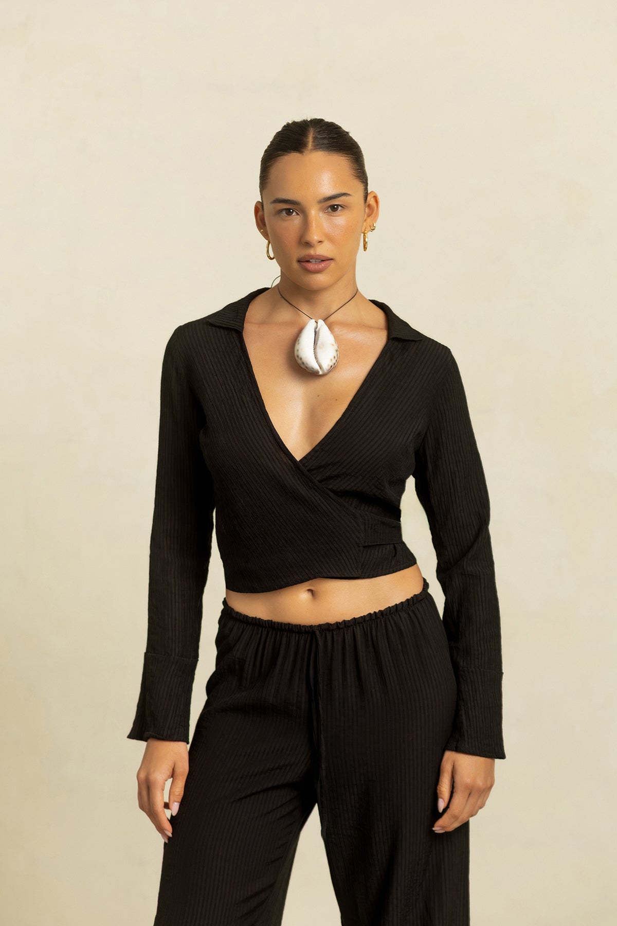 A Blusa Cross com amarração é a peça perfeita para quem valoriza estilo aliado à funcionalidade. Confeccionada em um tecido leve, texturizado e com toque extremamente macio, ela traz fluidez e delicadeza para qualquer composição.
