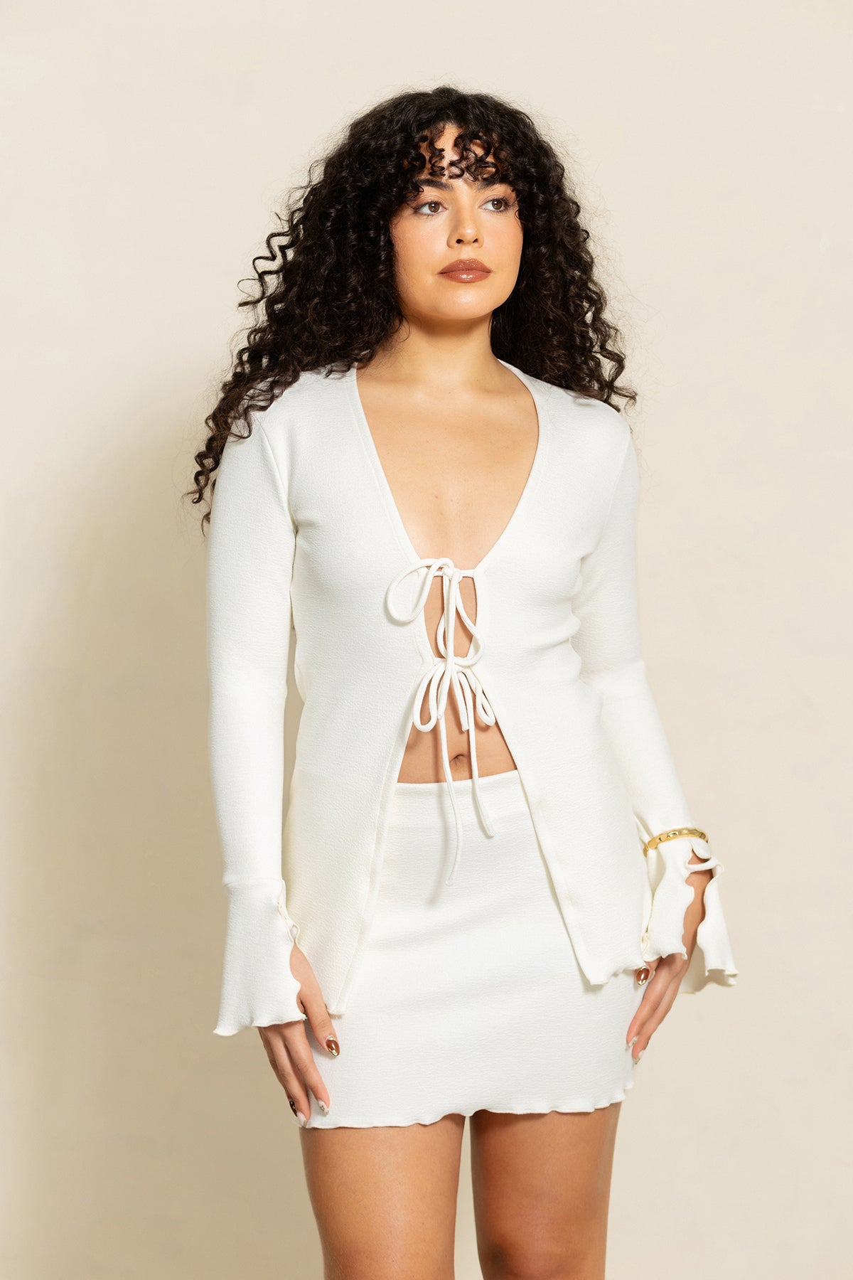 Dica: A Blusa Laces fica perfeita com a saia Drapeada do mesmo tecido ou Saia longa