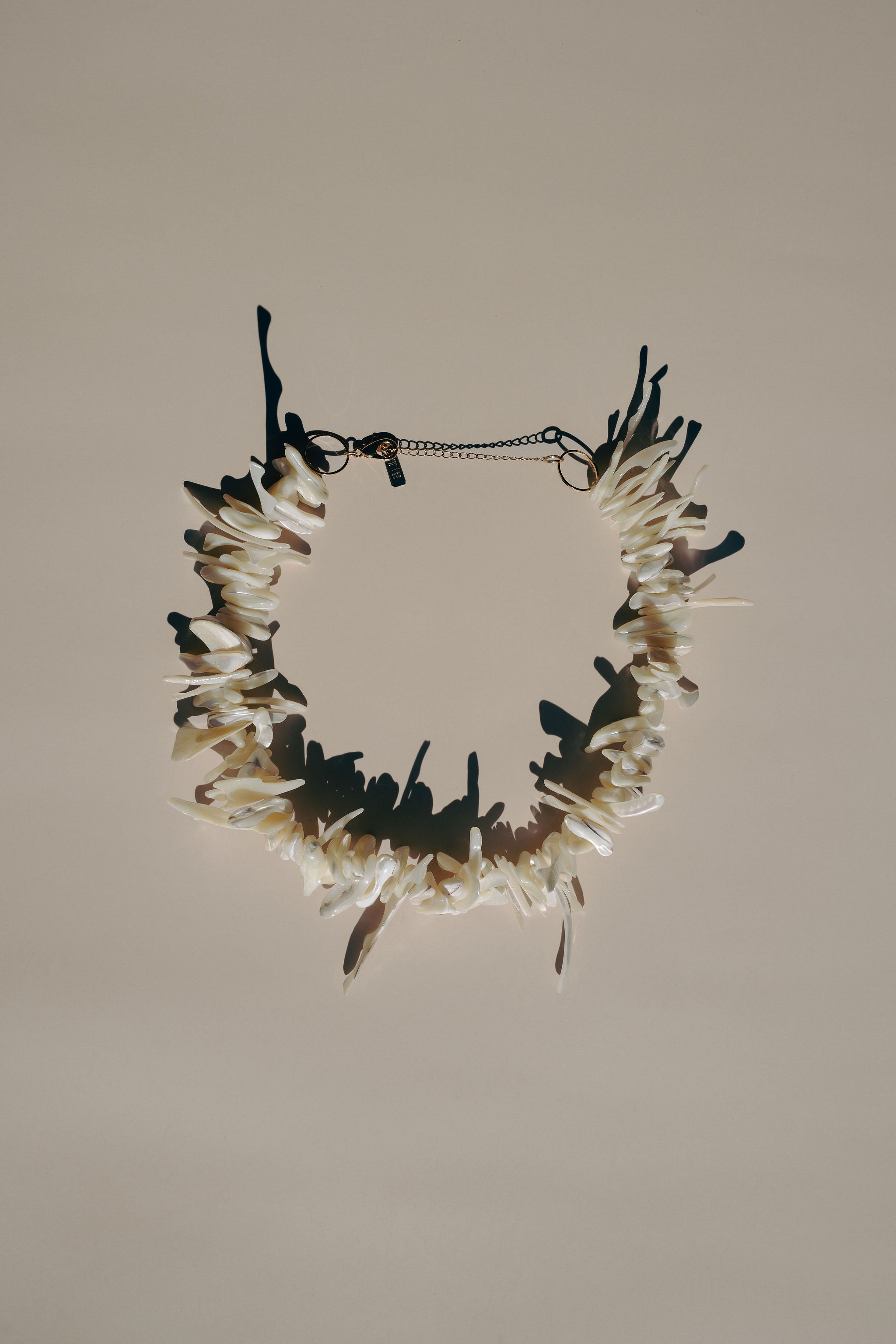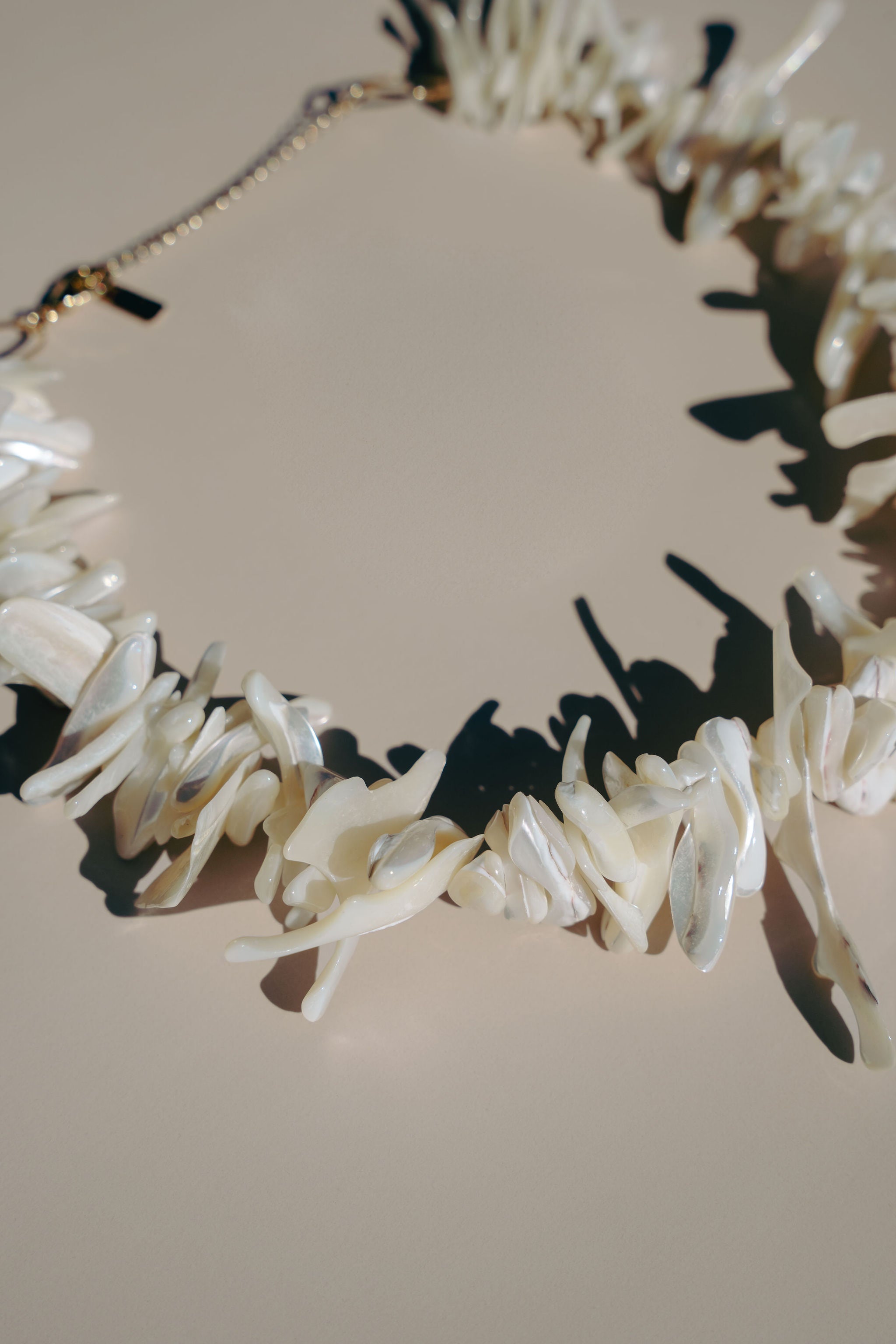 Colar de cascalho de madrepérolas naturais brancas e fecho com banho de ouro 18k.