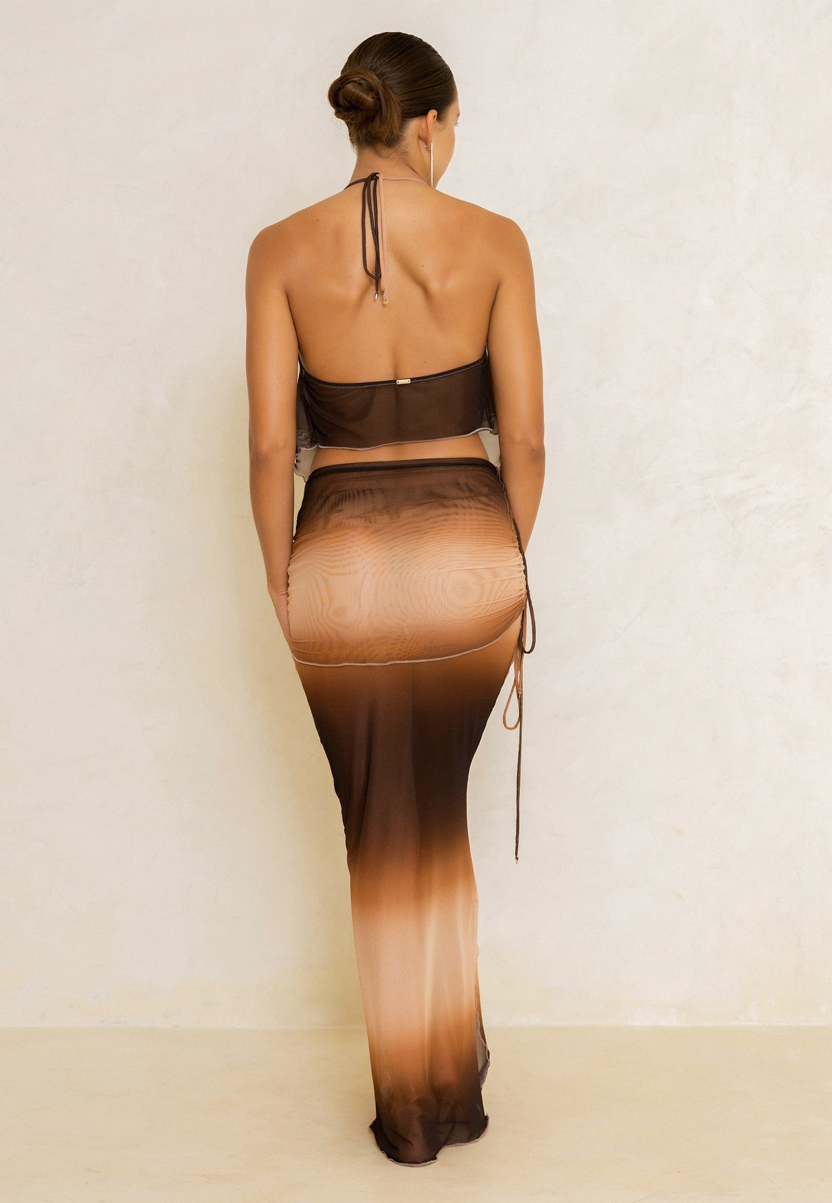 O Top Solstício é uma opção leve e impactante para uma ocasião especial. O Top foi criado para crescer na sua potência total junto a Saia Solstício. As duas peças criam um ar elegante e totalmente surpreendente. As alças são tiras reguláveis elegantemente acabadas com ponteiras banhadas em ouro.