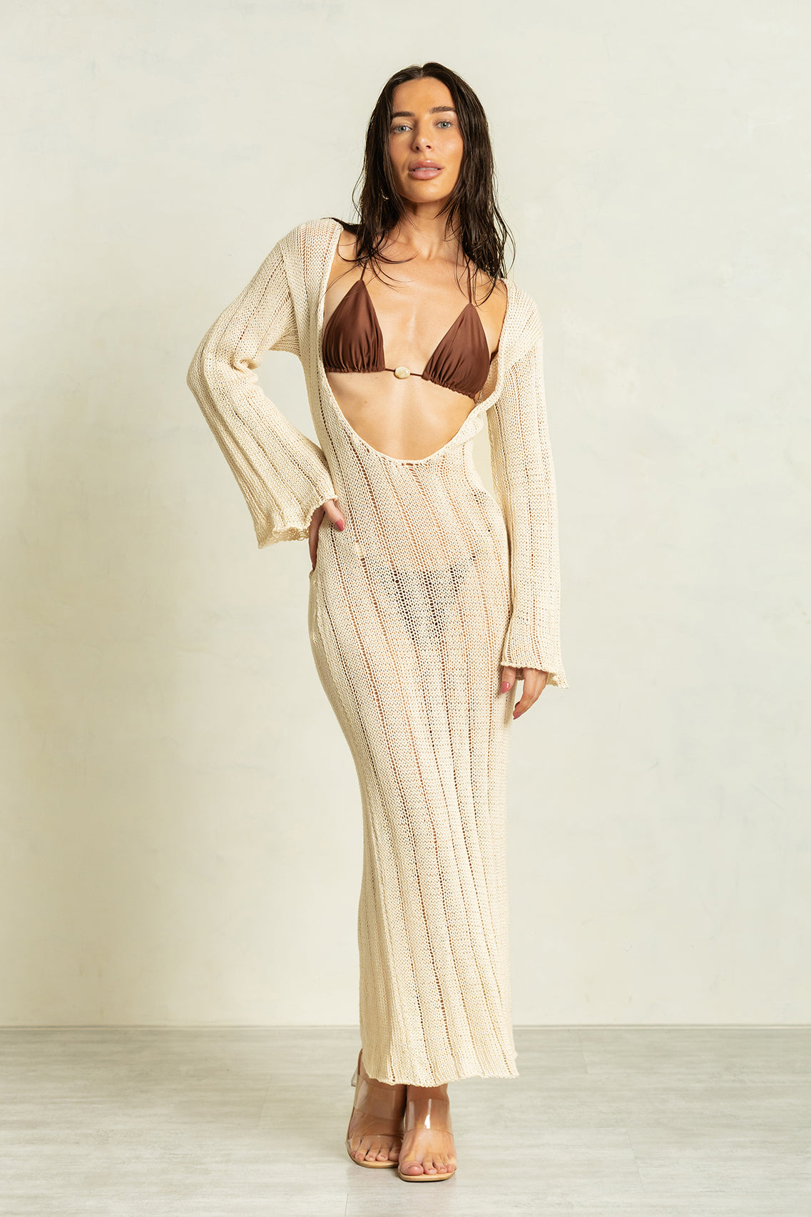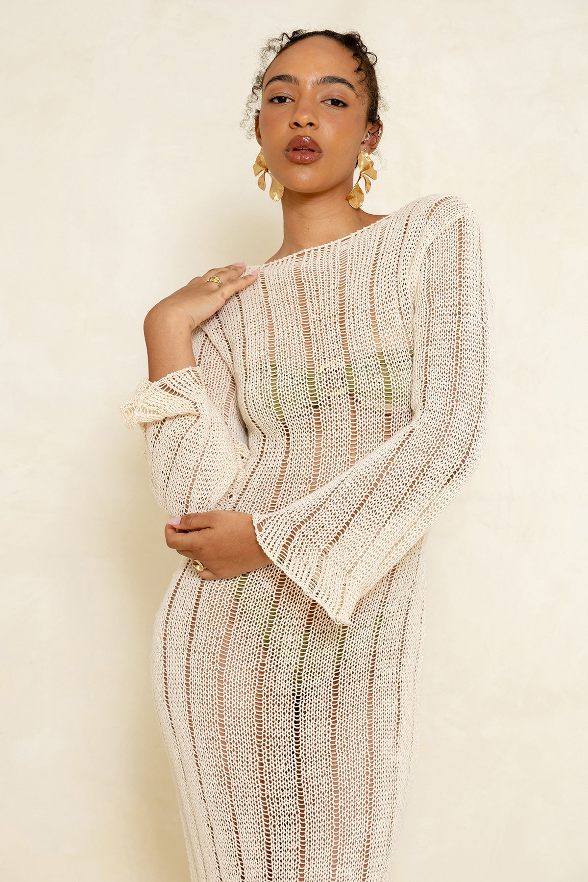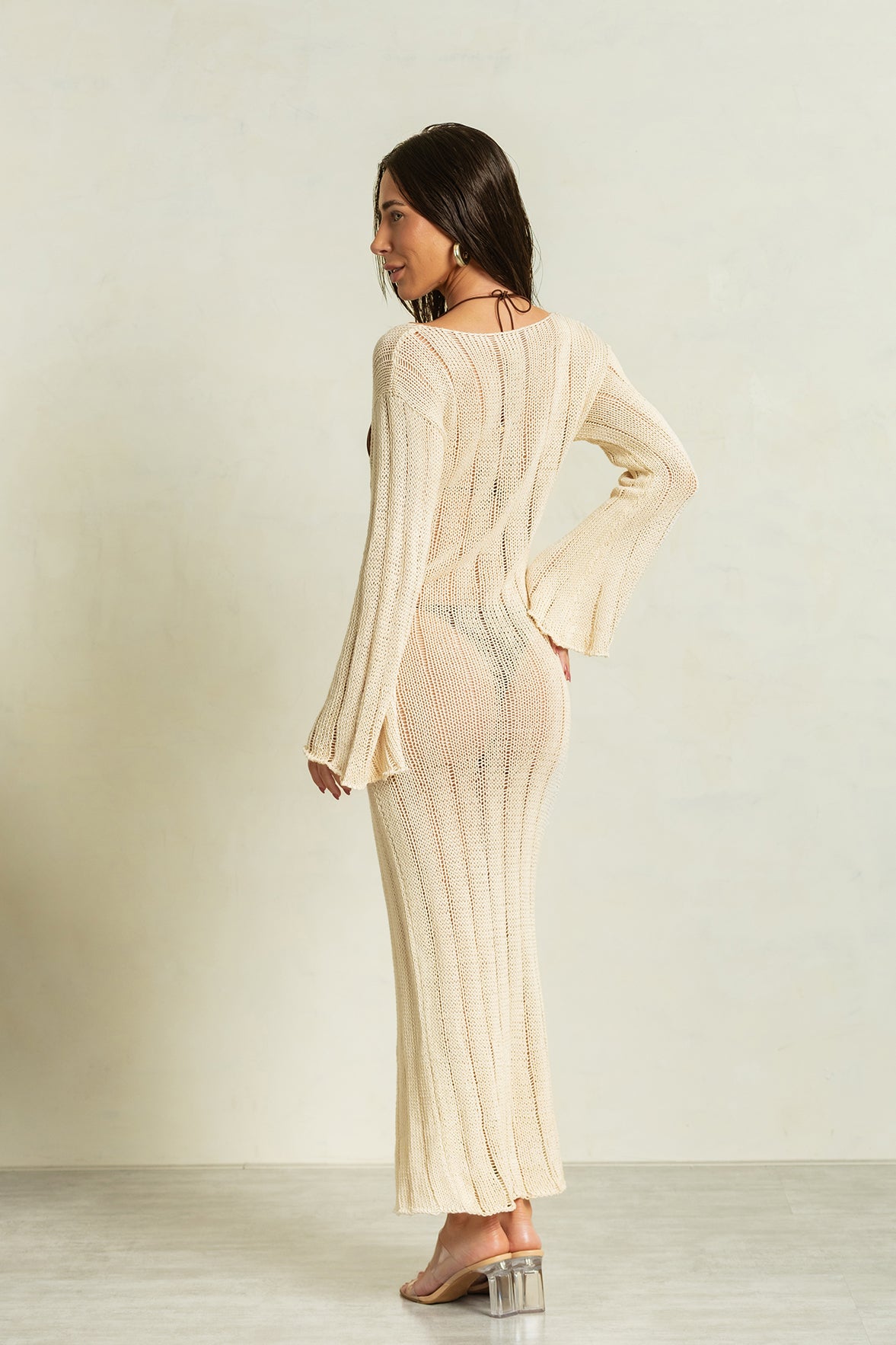 Seguindo nosso propósito sustentável, o vestido Terra é mais uma pérola da coleção Gaia. O tricô destaca-se como uma técnica artesanal que valoriza a conexão humana com a natureza. Os fios de algodão, cuidadosamente escolhidos por sua biodegradabilidade e suavidade, trazem uma sensação de conforto e leveza às peças. Cada ponto do tricô é elaborado com atenção e carinho